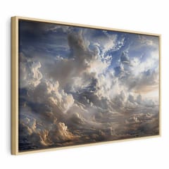 Obraz - Złote refleksy na obłokach chmur zapowiadających zmierzch rozmiar 60x40, wykończenie W ramie drewnianej naturalnej