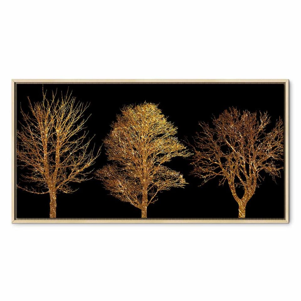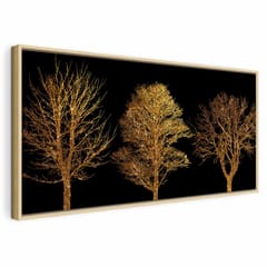 Obraz - Złoty las (1-częściowy) szeroki rozmiar 60x30, wykończenie W ramie drewnianej naturalnej