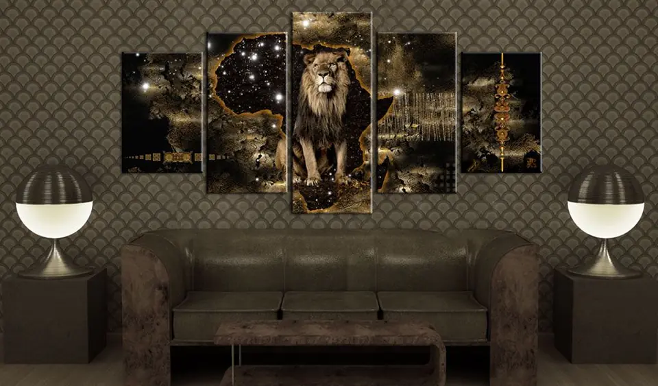 Obraz - Złoty lew (5-częściowy) szeroki rozmiar 100x50, wykończenie Na płótnie włoskim