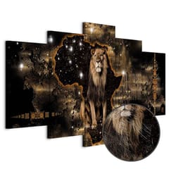 Obraz - Złoty lew (5-częściowy) szeroki rozmiar 200x100, wykończenie Premium Print