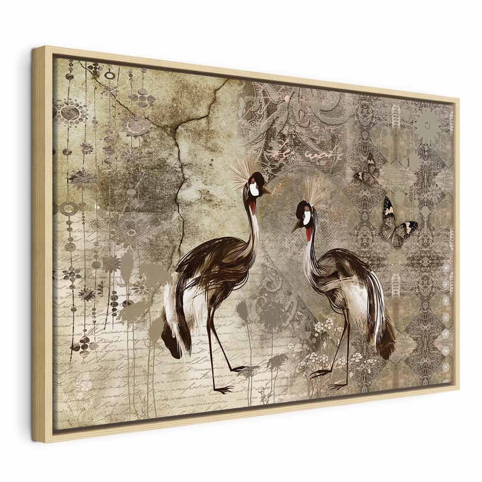 Obraz - Żurawie retro (1-częściowy) szeroki rozmiar 60x40, wykończenie W ramie drewnianej naturalnej