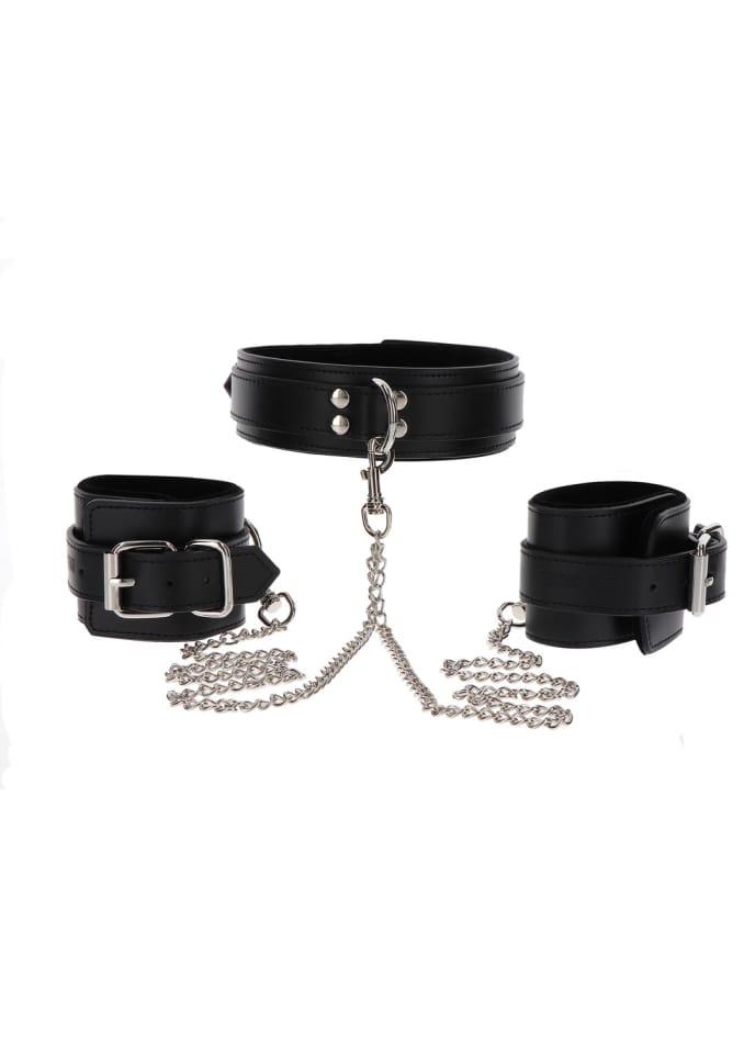 Obroża z kajdankami na nadgarstki Taboom Heavy D-Ring collar and Wrist Cuffs