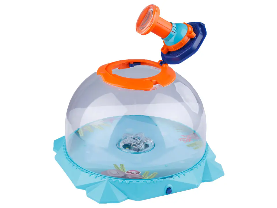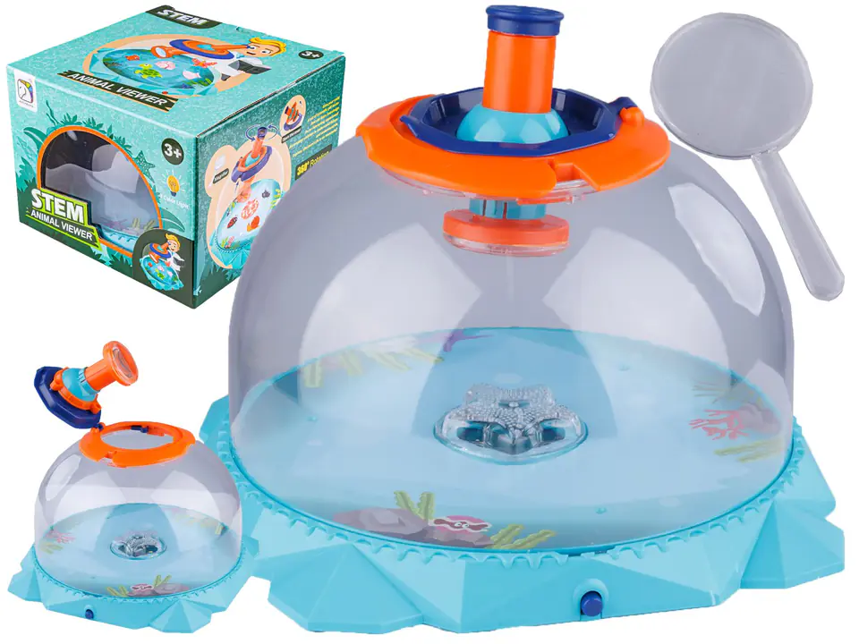 Kapsuła posiada na górze otwarcie - drzwi, przez które robaczki dostaną się do środka. Podczas gdy insekty będą rozglądać się po nowym miejscu - my możemy obserwować je same :) Zestaw posiada ruchomą lupę, dzięki czemu nie uciekną nam z pola widzenia. Pojemnik posiada otwory wentylacyjne zapewniające ciągły dopływ świeżego powietrza. Obserwować można zarówno żywe organizmy jak i martwą naturę: skamieliny itd. Obserwatorium posiada wygodny uchwyt, dzięki czemu produkt możemy zabrać ze sobą na każdą wycieczkę.