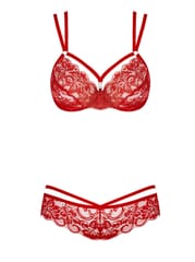 Obsessive 860-SET-3 – Koronkowy Komplet Damski w Kolorze Czerwonym, Rozmiar L/XL