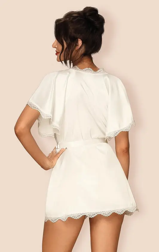 Obsessive Prima – Satynowy Peniuar z Koronką, Biały, Rozmiar S/M