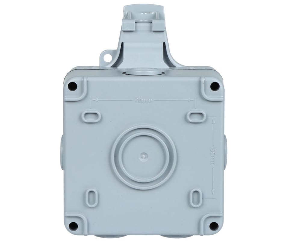 Wytrzymała, odporna na warunki atmosferyczne (IP66) obudowa wykonana jest z trwałego tworzywa sztucznego ABS i zapewnia optymalną ochronę przed kurzem, strumieniami wody i obciążeniami mechanicznymi. Idealnie nadaje się do użytku na zewnątrz, w takich miejscach jak piwnica, ogród, garaż i strych. Wejścia kablowe ze wszystkich czterech stron.