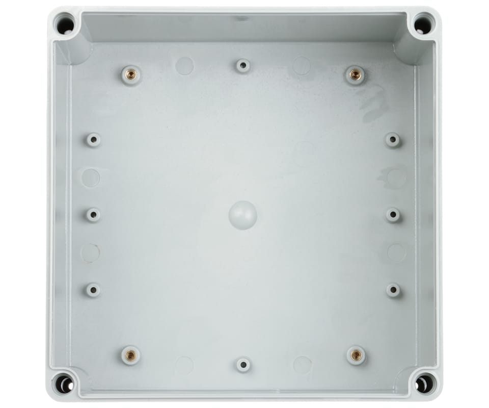 | Wybrane cechy: | Hermetyczna Gumka uszczelniająca Obudowa przystosowana do montażu na ścianie Przykręcana pokrywa W puszce znajdują się cztery mosiężne tuleje montażowe z gwintem M4 Rozstaw otworów montażowych : 182 x 182 mm |