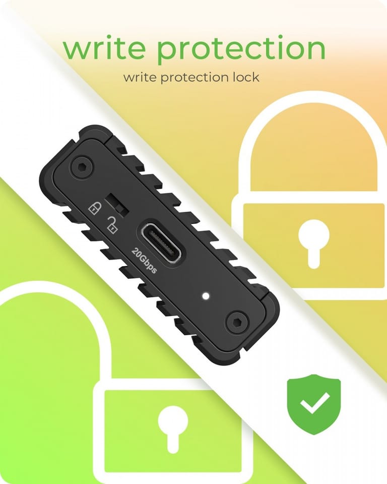 - Optymalne odprowadzanie ciepła: Aluminiowa obudowa jest wyposażona w żebra chłodzące i dzięki szczególnie dużej powierzchni zapewnia kompaktową konstrukcję i efektywne odprowadzanie ciepła z dysku SSD M.2