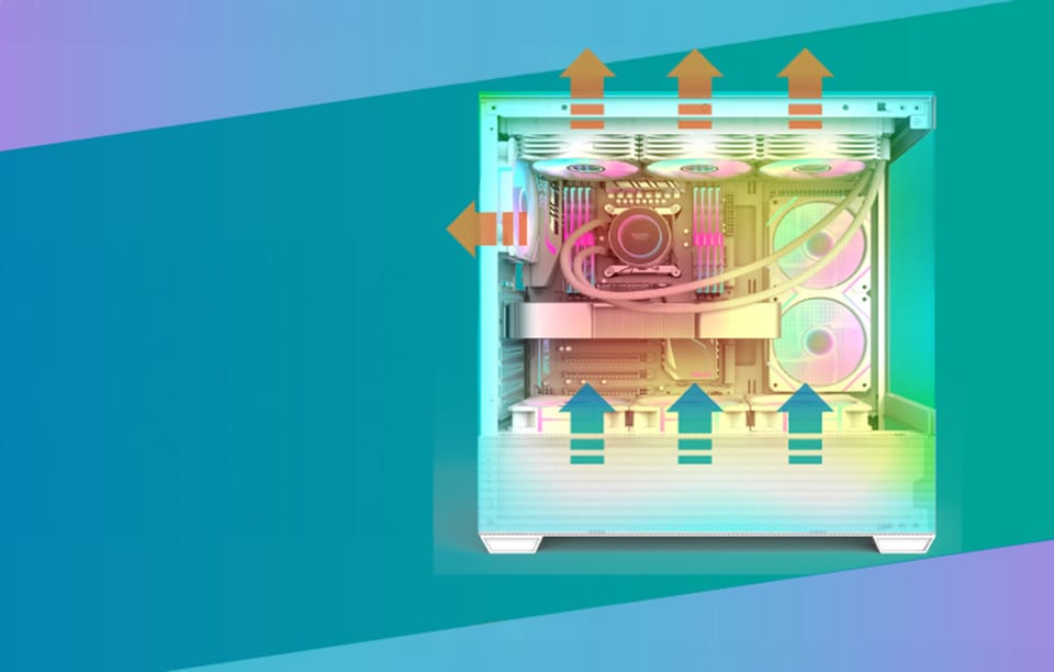 Model DS900 Air pozwala zbudować wydajny system chłodzenia z możliwością montażu wielu wentylatorów i radiatorów, zapewniając optymalne warunki pracy dla wszystkich komponentów. Co więcej, tylna część obudowy została wyposażona w ochronną siatkę ze stali, która pozwala na jeszcze skuteczniejszą wentylację. Jest to kluczowe dla zachowania optymalnej temperatury i efektywnego chłodzenia zwłaszcza podczas intensywnej pracy.