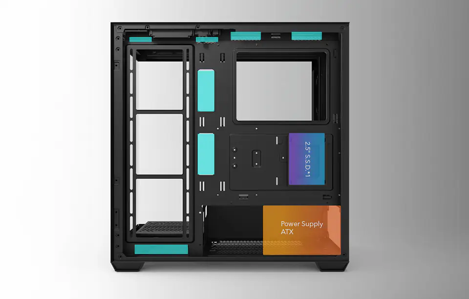 Darkflash DS900 wyróżnia się nie tylko swoim wyglądem. Jest to obudowa zbudowana z myślą o wytrzymałości. Mechanizm wspierający i solidna konstrukcja zapewniają stabilność oraz bezpieczeństwo dla wszystkich komponentów komputera, co jest szczególnie ważne przy rozbudowie systemu.