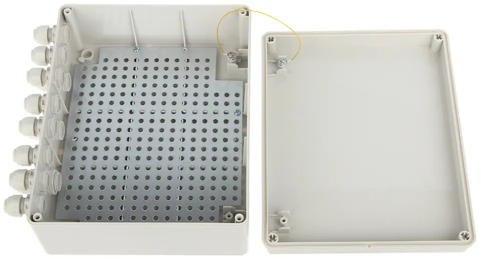| Wybrane cechy: | Obudowa przystosowana do montażu na ścianie Rastrowy system montażu modułów (kompatybilny z urządzeniami marki ATTE) Obudowa wyposażona jest w 11 przepustów kablowych z dławnicami w układzie 10 x M16 + 1 x M20 Klasa szczelności : IP56 |