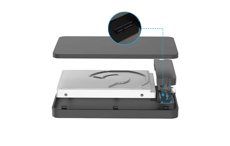 Umieszczenie dysku twardego w obudowie jest banalnie proste. Wystarczy wcisnąć i przesunąć tylną obudowę, umieścić dysk w środku, zamknąć i gotowe! Podłącz się ze swoim urządzeniem bez żadnych sterowników i korzystaj swobodnie ze swojej bazy danych gdziekolwiek zechcesz. Wykorzystuj obudowę do bezpiecznego transportowania dysku i bezpiecznie zabieraj go ze sobą w plecaku czy torbie.