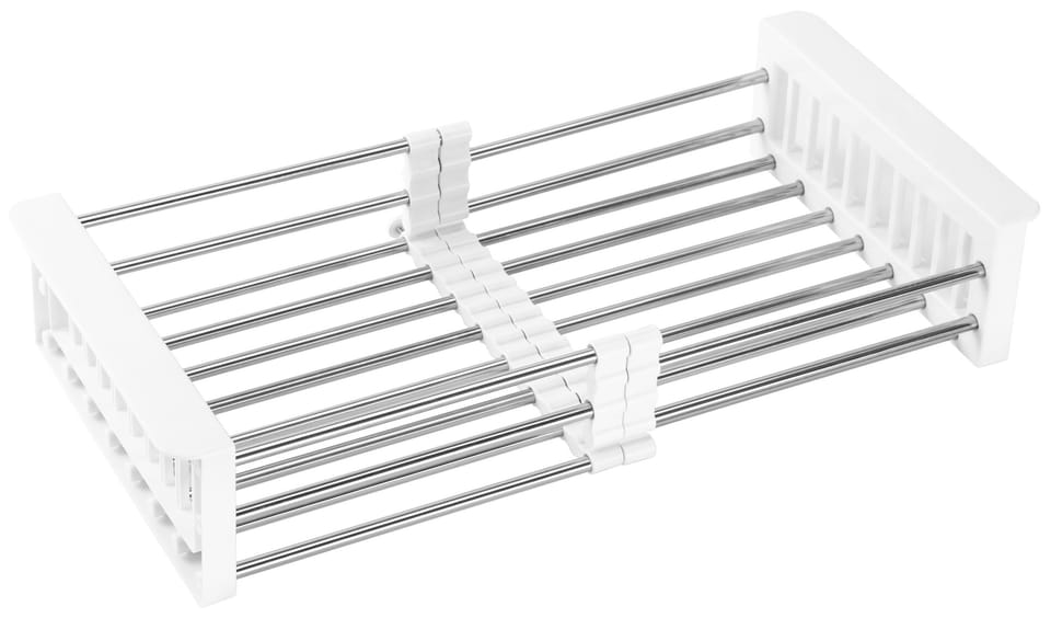 Ociekacz suszarka do warzyw ORDOS biały na zlewKolor: biały Praktyczny i uniwersalnySzukasz praktycznego i uniwersalnego ociekacza? Dobrze trafiłeś! Przed Tobą ociekacz Ordos. Wykonany został z mocnego tworzywa sztucznego i stali nierdzewnej, dzięki czemu jest odporny na korozję i bardzo trwały. Doskonale nada się do suszenia naczyń, warzyw, owoców po umyciu. Teleskopowa konstrukcja pozwala na dopasowanie do pożądanego rozmiaru zlewu. Koszyk jest regulowany w zakresie od 28 cm do 43 cm. Zalety:Uniwersalny i praktycznyWykonany z materiałów najwyższej jakościStabilna i solidna konstrukcjaTeleskopowy - regulowana szerokośćŁatwy do utrzymania w czystości Wymiary:Wysokość: 9 cmSzerokość: od 28 do 43 cmGłębokość: 22 cm UWAGA | Przedstawione kolory należy traktować poglądowo - mogą odbiegać od rzeczywistych ze względu na różne ustawienia monitorów oraz proces obróbki zdjęć • Rzeczywiste wymiary mogą się różnić od podanych w opisie. Tolerancja błędów może wynosić +/- 1 cm
