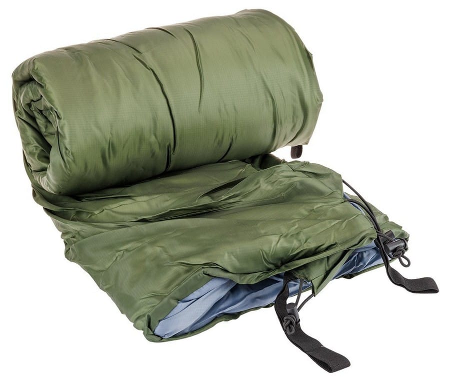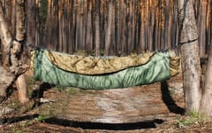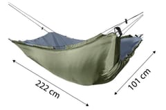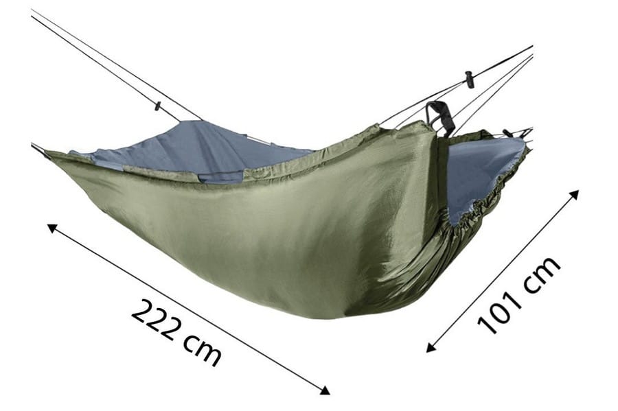Ocieplacz kempingowy 2 w 1, materiał główny : 210T Poliester, wypełnienie : bawełna i poliester, wodoodporny, wymiary : 222 x 101 cm, temperatury pracy : 0-10 °C, można wykorzystać jako podpinka pod hamak lub kołdra kempingowa, 4 zaczepy na każdym rogu, 4 ściągacze do regulacji obwodu podpinki