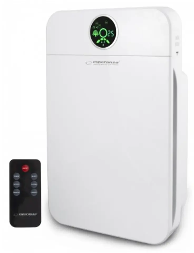 Dzięki zaawansowanemu, innowacyjnemu 3-poziomowemu filtrowi, oczyszczacz powietrza Esperanza zatrzymuje aż do 99,97% zanieczyszczeń takich jak: alergeny, pyłki czy kurz. Wchłania formaldehyd, benzen, ksylen oraz inne szkodliwe gazy, a także nieprzyjemne zapachy. Jony ujemne mają niezwykłą zdolność łączenia się z dodatnio naładowanymi cząstkami pyłu i dymu. Dzięki temu zabijają bakterie i wirusy. Oczyszczacz powietrza Esperanza to nowoczesne urządzenie, które zapewni idelanie czyste i świeże powietrze w Twoim domu.