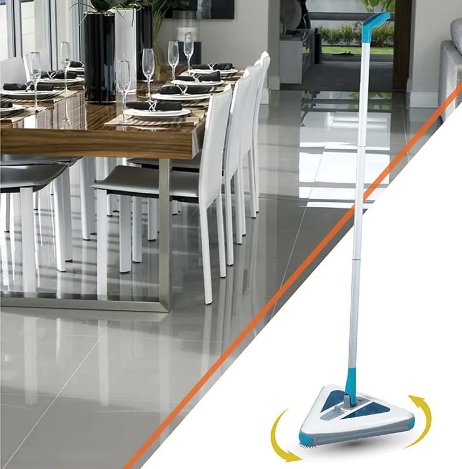 - Obrotowa trójkątna głowica zapewniająca precyzyjne zamiatanie/odkurzanie