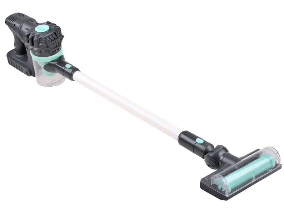 Bezprzewodowy, nowoczesny odkurzacz dla dzieci. Zabawkowy odkurzacz pozwoli na czynne uczestnictwo w codziennych, domowych obowiązkach. Zabawki z tej serii pozwalają dzieciom na uczestniczenie w codziennych czynnościach domowych rodziców w sposób bezpieczny i pełen beztroskiej zabawy. Zestaw ten pomoże w przyuczaniu dziecka do dbania o czystość we własnym pokoju. Zabawa w sprzątanie od najmłodszych lat może okazać się świetnym sposobem nauczenia najmłodszej pociech o dbanie o swój pokój.Zestaw w całości wykonany z plastiku w eleganckim szaro zielonym kolorze. Zabawka posiada dwie wymienne końcówki, podczas pracy świeci kolorowym światełkiem. Kubełek na kurz jest otwierany, dzięki czemu można wysypać zaciągnięte śmieci.