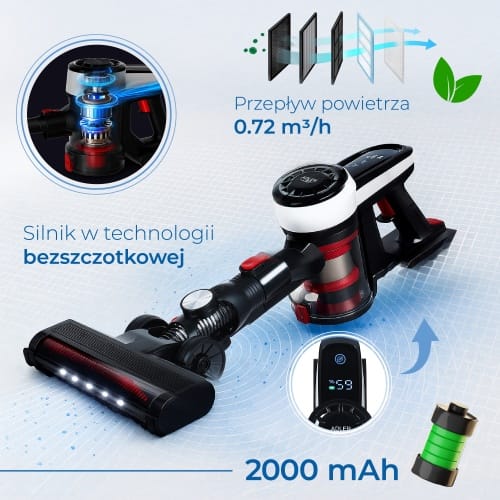 Bezszczotkowa technologia silnika z kolei zapewnia skuteczną i wydajną pracę odkurzacza, dzięki czemu urządzenie może radzić sobie z różnymi rodzajami zanieczyszczeń i kurzu. Bezszczotkowe silniki są bardziej wydajne i trwalsze niż tradycyjne silniki szczotkowe, ponieważ nie ma w nich zużywających się szczotek.