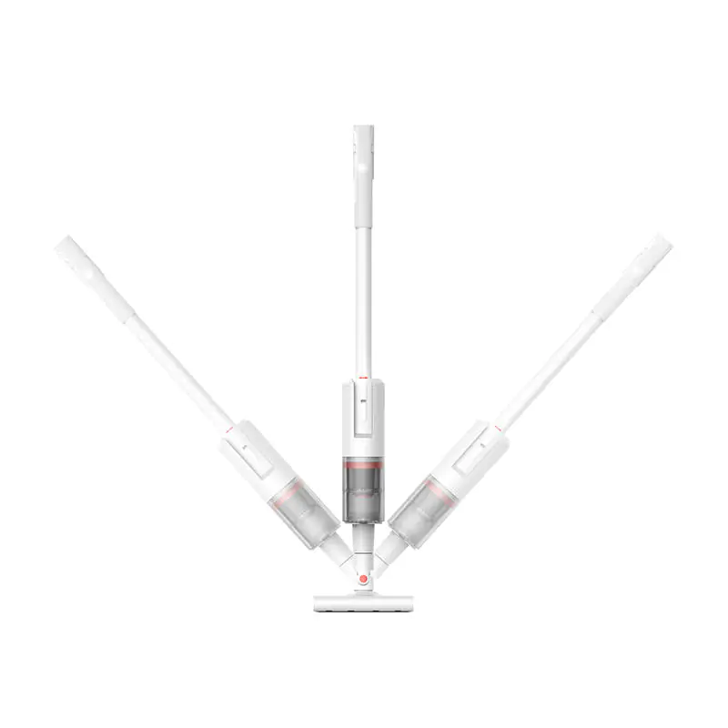 Odkurzacz wyróżnia się modułową konstrukcją, dzięki czemu możesz z łatwością dostosować go do swoich potrzeb. Jego najważniejsze elementy (główna jednostka ze zbiornikiem na kurz, uchwyt, rura i szczotka) montuje się oddzielnie, co umożliwia różne konfiguracje. Urządzenie sprawdzi się także w roli odkurzacza ręcznego. Zamontuj główną jednostkę bliżej szczotki, aby ułatwić sobie odkurzanie podłóg, a następnie przymocuj ją do uchwytu, aby przenieść środek ciężkości i bez trudu wyczyścić zasłony lub zebrać pajęczyny z sufitu.