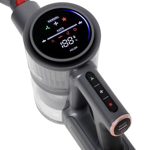 AD 7062 Wydajny odkurzacz PRODedykowany do mieszkań o powierzchni 100 m²Typ wyświetlacza: Dotykowy LEDWyświetlacz pokazuje procent baterii, aktualny tryb pracy i ikony ostrzegawczeADVANCED POWERFUL ELECTROMAGNETIC BRUSHLESS MOTOR ™ - silnik bezszczotkowyMoc silnika 400W Maksymalny przepływ powietrza 15 litrów / sekundę3 poziomy prędkości ssaniaTryb automatyczny z czujnikiem kurzu dostosowuje moc ssania do stopnia zabrudzenia powierzchniMoc ssania: 9 500 Pa dla niskiej mocy / 19 000 Pa dla średniej mocy / 31 000 Pa dla najwyższej mocyCzas pracy: 55 minut dla niskiej mocy / 24 minuty dla średniej mocy / 15 minut dla najwyższej mocyCzas pełnego naładowania akumulatora: 4-4,5 godzinyZaawansowana technologia filtracji: 9 stożków multicyklonu3-stopniowy system filtracji-typ filtra wstępnego: metalowa siatka- typ filtra wlotowego: EPA 12- typ filtra wylotowego: gąbkowyFiltr EPA 12 zatrzymuje 99,99% zanieczyszczeń o wielkości cząstek powyżej 0,3 nmFiltry można myć, suszyć i ponownie instalowaćWyjmowany akumulator litowo-jonowyPojemnik na kurz 0,6 l z systemem łatwego opróżniania jednym przyciskiemDługość przewodu zasilającego ładowarki 1,5 mObszar działania: nieograniczony - urządzenie akumulatoroweParkowanie pionoweAkcesoria w zestawie:- szczotka elektryczna LED DUST SCANNER ™ do podłóg twardych, o szerokości 22 cm, z oświetleniem LED i wyposażona w gumowe kółka chroniące podłogę- dodatkowa rolka do szczotki elektrycznej LED DUST SCANNER ™ do podłóg miękkich, szerokość rolki 22 cm- mała ssawka szczelinowa 2w1- dysza szczelinowa- wieszak ścienny z miejscem na akcesoria- aluminiowa rura prostaZaawansowane komunikaty ostrzegawcze:- Ochrona przed przegrzaniem - Zabezpieczenie przed zablokowaniem wałka- Zabezpieczenie przed zablokowaniem ssania- Zabezpieczenie przed zablokowaniem filtra- Ochrona akumulatoraPojemność akumulatora: 2200 mAhNapięcie akumulatora: 29,6VNapięcie wyjściowe zasilacza: 36VPrąd wyjściowy zasilacza: 500mAWejście zasilania: 220-240V ~50/60HzPoziom hałasu: ≤80 dBWaga urządzenia: 1,8 kg