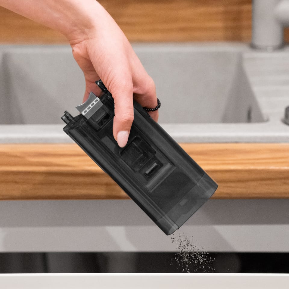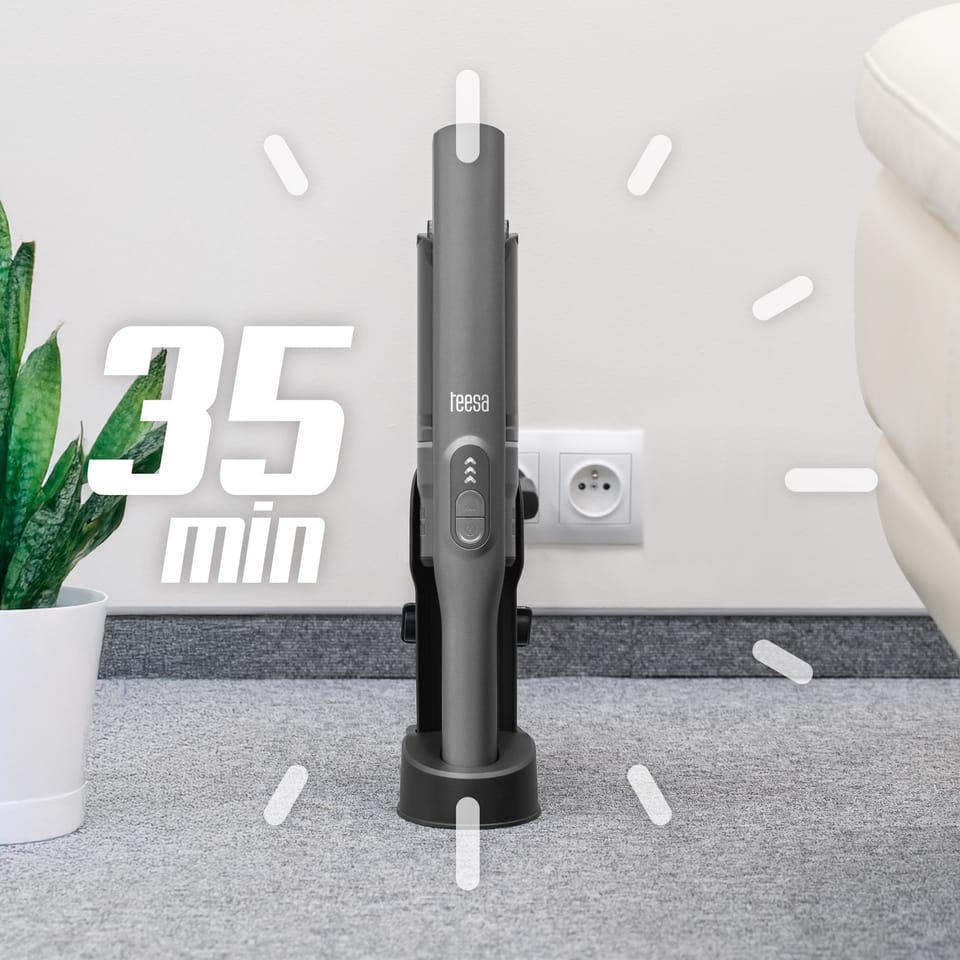 Filtr HEPAKompaktowy rozmiarErgonomiczny uchwyt2 stopnie regulacji mocy Łatwe opróżnianie pojemnika na kurz Moc: 200 WMoc ssania: 20 kPaPojemność pojemnika na kurz: 200 mlCzas pracy: ok. 35 min.Czas ładowania: 4,5 godz.Akumulator: 2200 mAh 14,8 VZasilacz:wejście: 100-240 V~, 50-60 HzWyjście: 18 V, 500 mAWymiary: 450 x 70 x 86 mmW zestawie: baza do ładowania, końcówka szczelinowa 2w1, ssawka podłogowa, podstawka