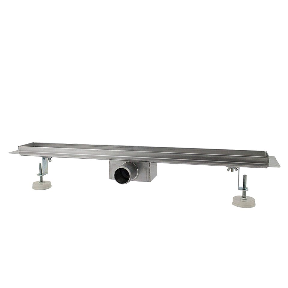 Wydajność odpływu: 35l/min Rura spustowa: DN40 Redukcja: fi40 na fi50 Wysokość bez nóżek 7,5cm Maks. wysokość z nóżkami: 14,5cm Długość: 50cm Szerokość: 7cm