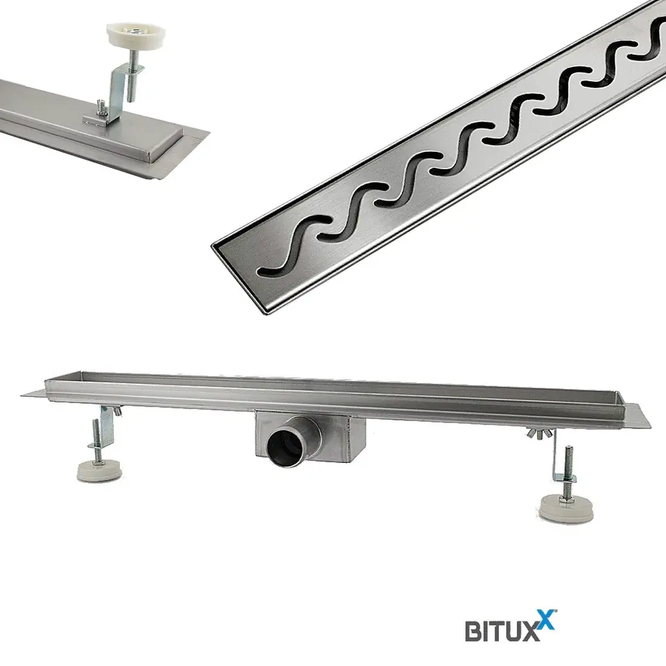 Wysoka jakość wykonania, elegancki design oraz konstrukcja najwyższej jakości. Pięć różnych modeli do wyboru oraz długości od 50 cm do 150 cm (dostępnych na pozostałych aukcjach), dzięki czemu wybierzesz odpływ idealnie pasujący do Twojej łazienki. Wykonanie ze stali nierdzewnej sprawia że Nasze odpływy są niezwykle trwałe i odporne na korozję.