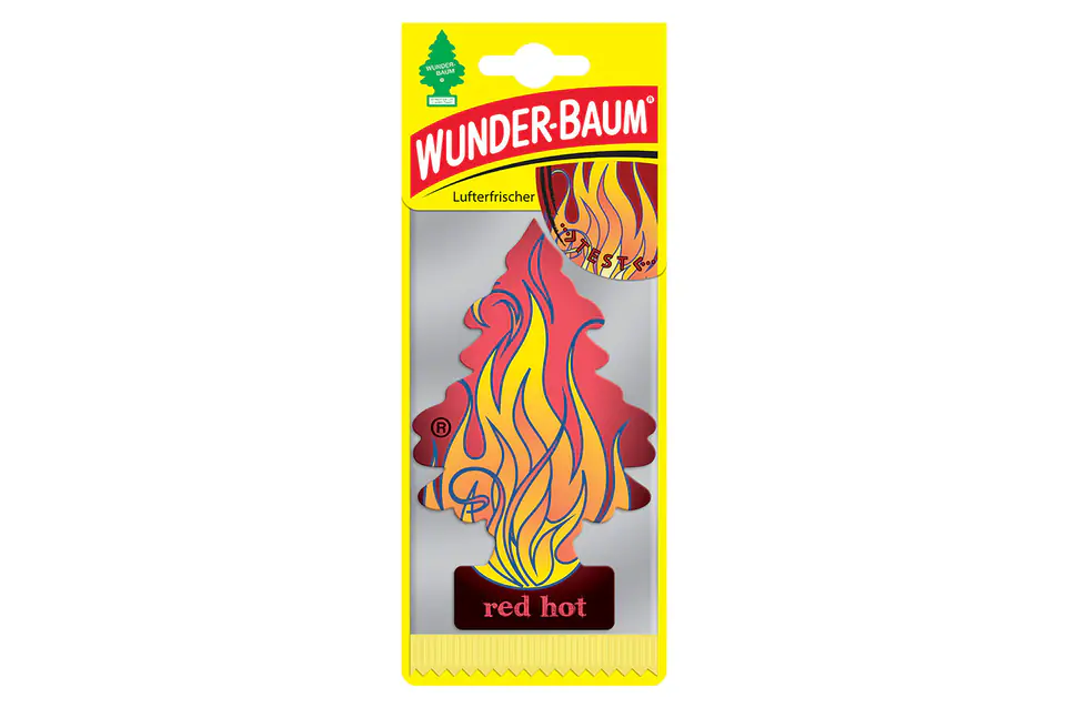 Do rodziny kultowych drzewek zapachowych amerykańskiego producenta WUNDER-BAUM dołącza zapach red hot, który charakteryzuje się mieszanką cynamonu i anyżu. ZAPACH MOCNO ENERGETYCZNY Właściwości produktu: WUNDER-BAUM? to najchętniej kupowany, od lat, papierowy zapach samochodowy. Najważniejszym walorem drzewek WUNDER-BAUM? jest ich wydajność - utrzymujący się do ośmiu tygodni aromat, skutecznie neutralizujący nieprzyjemne zapachy np. dymu tytoniowego, wilgoci oraz bogata paleta zapachów.