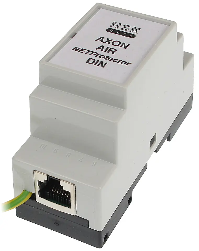 Urządzenie przeznaczone do ochrony urządzeń dołączonych do sieci Ethernet 10/100/1000 Mb/s, połączonych ze sobą skrętką biegnącą linią napowietrznąZabezpiecza każdy przewód w kablu czteroparowym i odprowadza ładunek elektryczny do ziemiUrządzenie jest pierwszym stopniem ochrony dla połączeń napowietrznychWarunkiem poprawnej pracy AXON-AIR/DIN jest podłączenie go do sprawnego uziemienia lub przewodu ochronnego PE