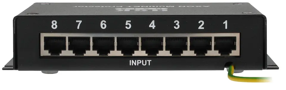 AXON-MULTINET-8 jest wielokanałowym urządzeniem przeznaczonym do ochrony przeciwprzepięciowej urządzeń dołączonych do sieci Ethernet 10/100/1000 Mb/s, takich jak: karty sieciowe, huby, switche, routery, itp. Urządzenie to składa się z 8 niezależnych kanałów (we/wy), w obrębie których zabezpieczone są 4 pary przewodów w skrętce UTP z odprowadzeniem ładunku do ziemi