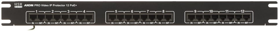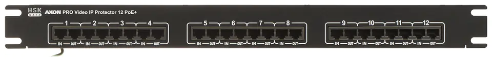 AXON-PRO-IP-12POE+ to wielokanałowe urządzenie firmy AXON służące do ochrony przeciwprzepięciowej urządzeń dołączonych do sieci Ethernet 10/100/1000 Mb/s i zasilanych zdalnie w technologii PoE+.Technologia PoE+ pozwala na zasilanie urządzeń o zwiększonym poborze mocy, np. kamer Speed Dome HD
