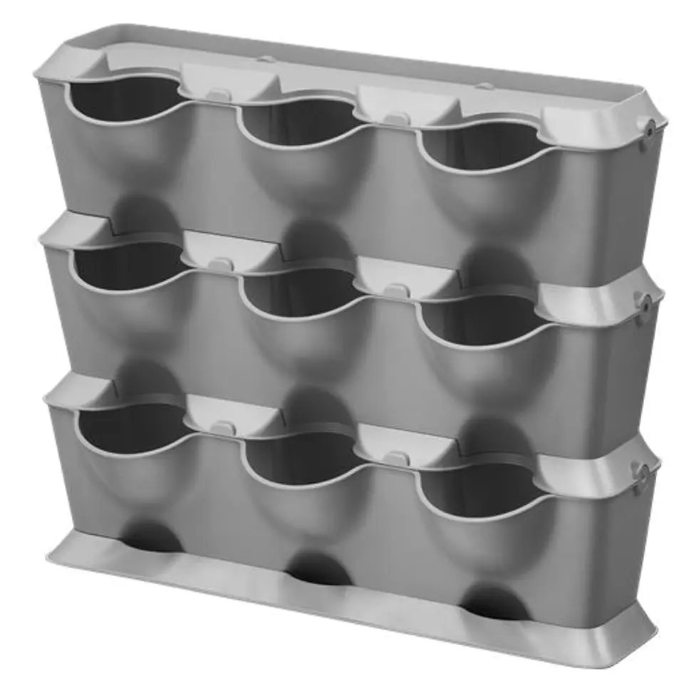 Zestaw zawiera 3 doniczki pionowe, 3 pokrywki, 1 płytę podstawy oraz 12 łączników.