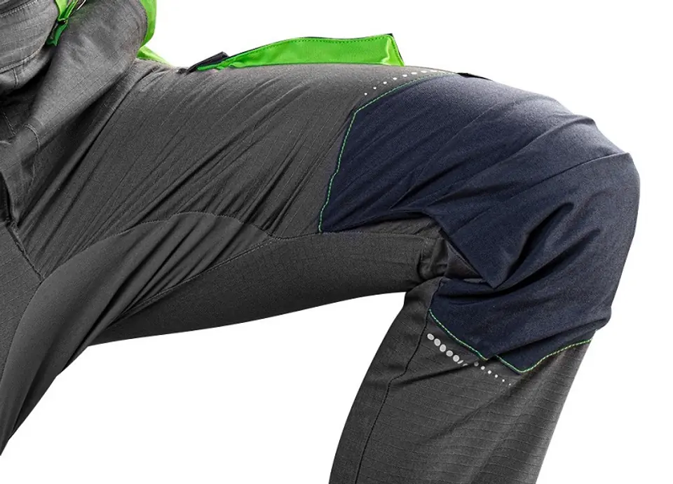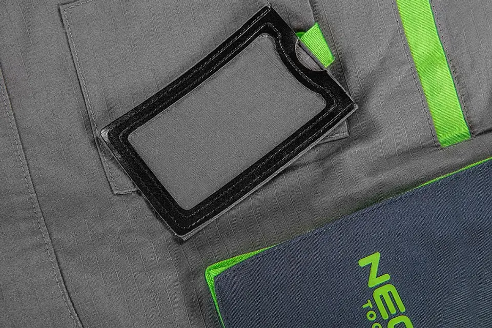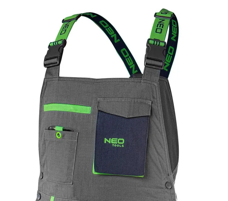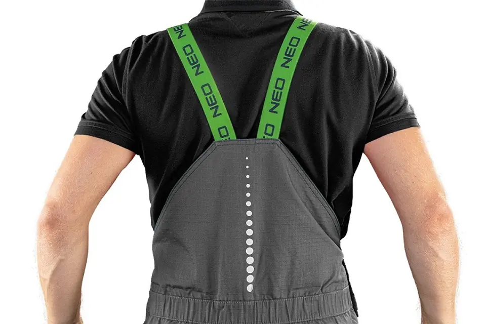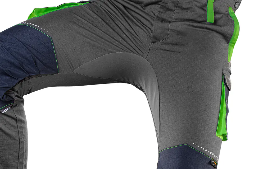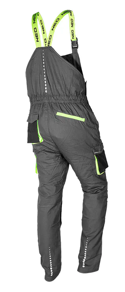 Ogrodniczki robocze PREMIUM, 100% bawełna, tkanina ripstop, gramatura 210 g/m2, wzmocnienia Cordura, miejsce na identyfikator- możliwość schowania w kieszeni, wysoki karczek z tyłu, kieszeń na nakolanniki, elastyczny panel z Cordury Stretch w kroku zwiększający komfort użytkowania, wzmocnienia na kolanach z Cordury, odblaskowe nadruki na nogawkach i na karczku, elastyczne szelki, guma w pasie, profilowane kolana, wewnętrzna wszywka imienna, unikalny projekt własny, Certyfikat CE, rozmiar M
