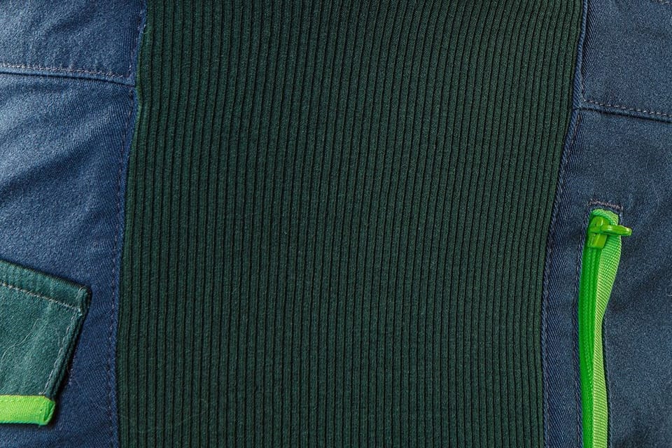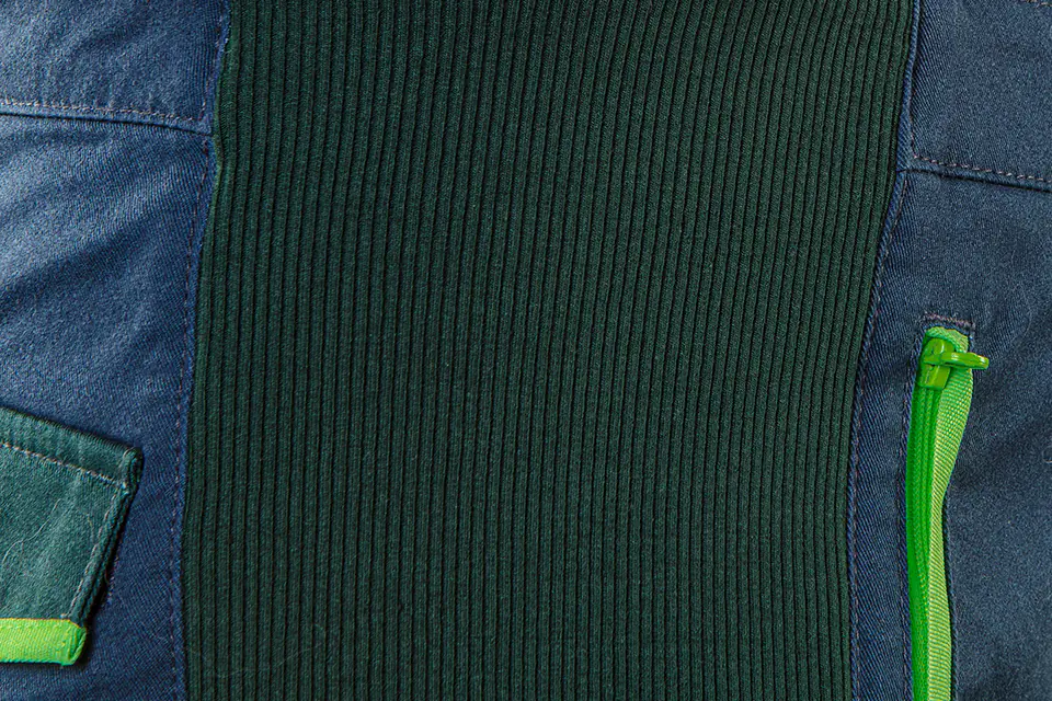 Ogrodniczki robocze PREMIUM, materiał główny 62% bawełna, 35% poliester, 3% elastan, gramatura 270 g/m2; dzianian ribowa 92% bawełna, 8% elastan, gramatura 360 g/m2, wzmocnienia Cordura, materiał z dodatkiem elastanu zwiększa komfort pracy, elastyczne panele po bokach zapewniają lepsze dopasowanie do sylwetki, wzmocnienie z Cordury na kolanach i piszczelach wraz z miękkim wypełnieniem zaszytym wewnątrz, wielofunkcyjne, pojemne kieszenie, profilowane kolana, odblaskowe nadruki oraz odblaskowy element na plecach, wewnętrzna wszywka imienna, unikalny projekt własny, Certyfikat CE, rozmiar XS