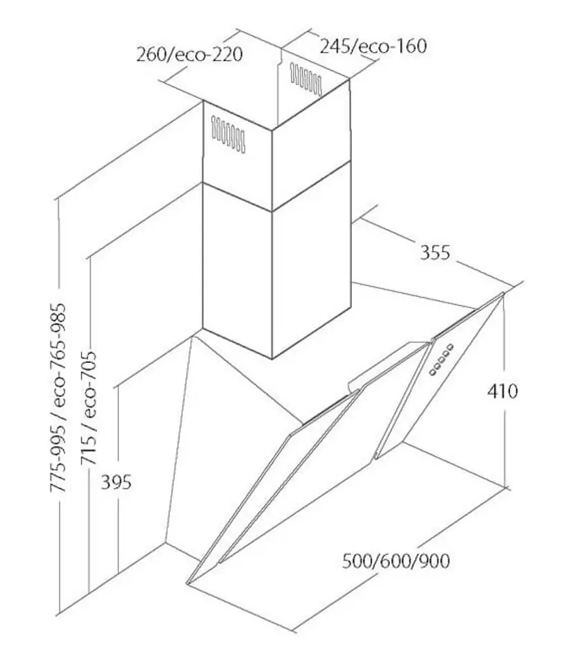 Okap kominowy AKPO WK-4 CETIAS 50 CZARNY 500mm; front czarne szkło