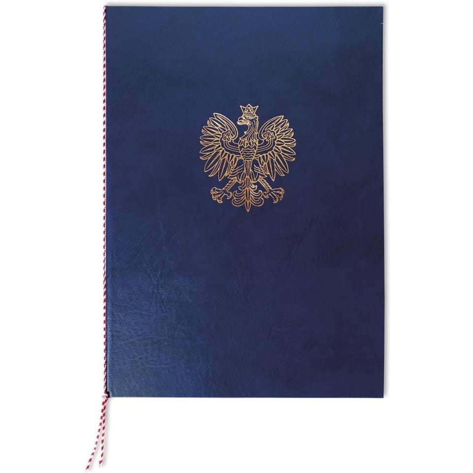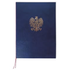 - Na okładce umieszczony jest złocony orzeł, wykonany metodą tłoczenia na gorąco.