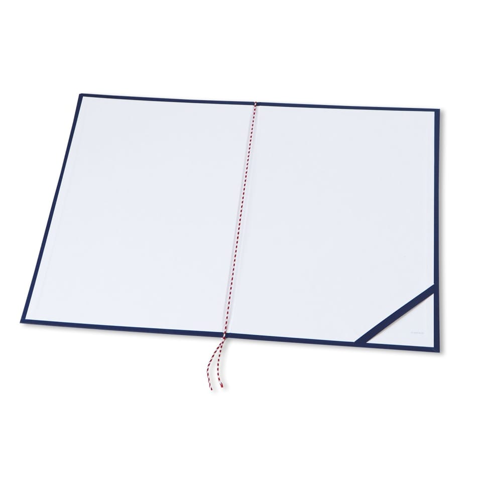 - Wewnątrz jednoczęściowa biała wyklejka oraz narożny pasek wykonany z okleiny okładki.