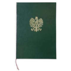 - Na okładce umieszczony jest złocony orzeł, wykonany metodą tłoczenia na gorąco.