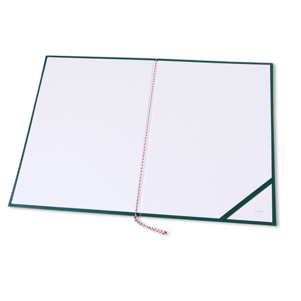 - Wewnątrz jednoczęściowa biała wyklejka oraz narożny pasek wykonany z okleiny okładki.