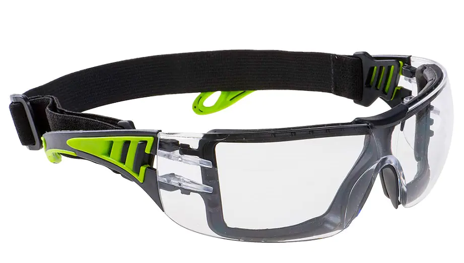 Dielektryczne okulary ochronne z zawiasami bez metalu mają wytrzymały i nowoczesny design z podwójną warstwa materiału na zausznikach.
