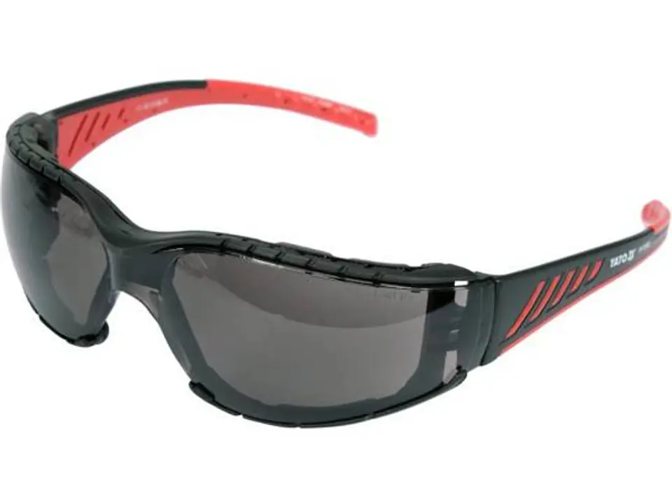 Okulary ochronne YT-73703 z szarymi szybkami umieszczonymi w oprawkach o podwyższonym komforcie. Szare barwienie w zależności od stopnia zaciemnienia ogranicza wpadanie jasnego światła. W okularach ochronnych tego typu filtr określa się jako ochronę przed olśnieniem słonecznym. Szybki zostały pokryte powłokami anti-fog oraz anti-scratch*. Ta pierwsza zapobiega parowaniu okularów, druga chroni przed nadmiernym porysowaniem. Szybki w najwyższej klasie optycznej nie zniekształcają obrazu, chronią również przed szkodliwym promieniowaniem UV. Oprawki zostały doposażone w zdejmowalną ramkę z pianki EVA, która ogranicza kontakt twardych elementów w okolicach oczu. Waga zaledwie 31 gramów oraz miękkie, elastyczne i antypoślizgowe końcówki zauszników sprawiają, że okularów niemal nie czuć na głowie.