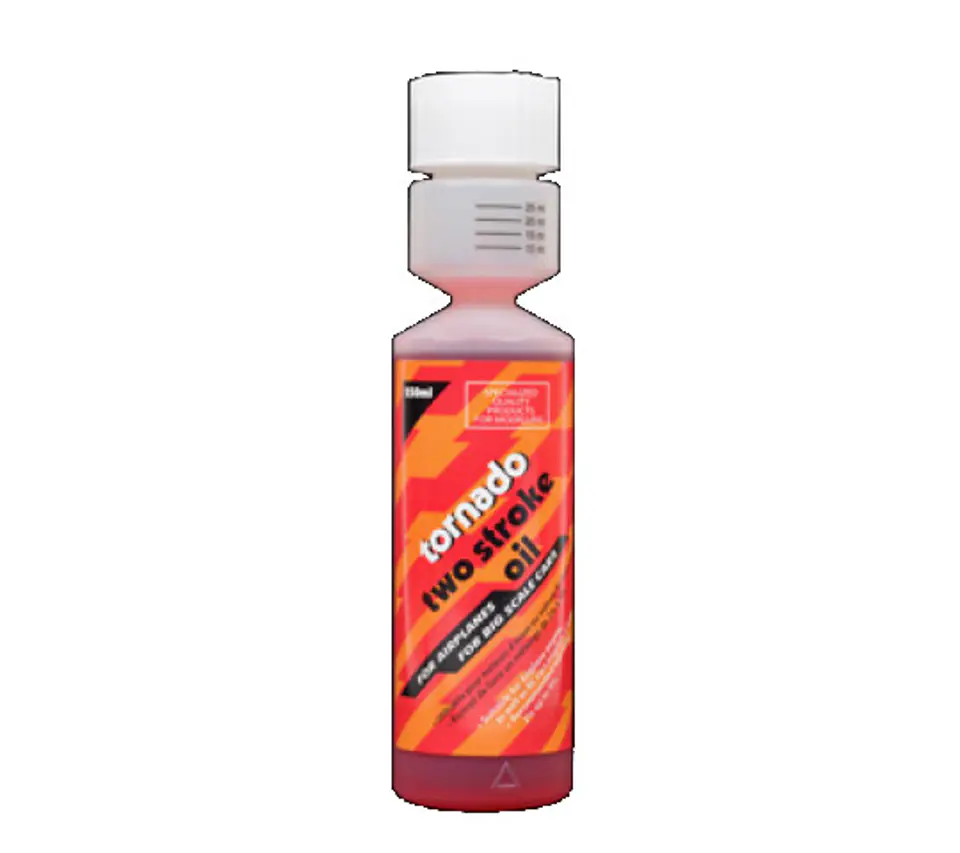 Olej Tornado przeznaczony do silników benzynowych o dwusuwowym trybie pracy. Smaruje, chłodzi i oczyszcza rozgrzane elementy silnika. Tak jak każdy olej, jego głównym zadaniem jest redukcja tarcia pomiędzy przesuwającymi komponentami silnika, co znacznie wydłuża jego żywotność oraz czas pomiędzy niezbędnymi naprawami. Olej idealnie sprawdzi się w silnikach benzynowych zastosowanych w modelach w skali 1:5.