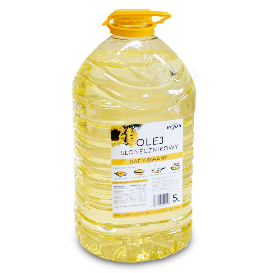 Wysokiej jakości olej słonecznikowy jadalny idealnie nada się do gotowania oraz smażenia. Charakteryzuje się jasnożółtą barwą i prawie niewyczuwalnym zapachem. Należy go przechowywać w temperaturze pokojowej. Olej spożywczy marki Erjox jest produkowany w Polsce.