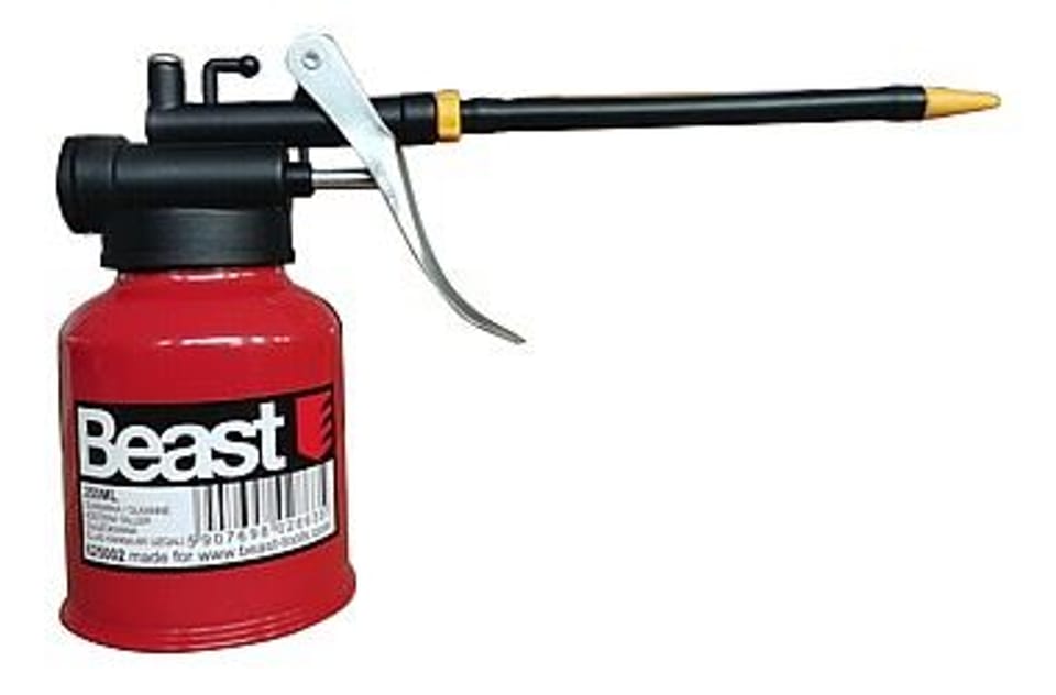 Oliwiarka wyposażona jest w pompkę oraz giętki wężyk, co umożliwia oliwienie nawet trudno dostępnych miejsc.
