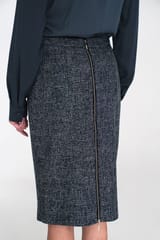 Ołówkowa spódnica z dekoracyjnym zamkiem - granatowy melanż - SP85 kolor granat, rozmiar 36