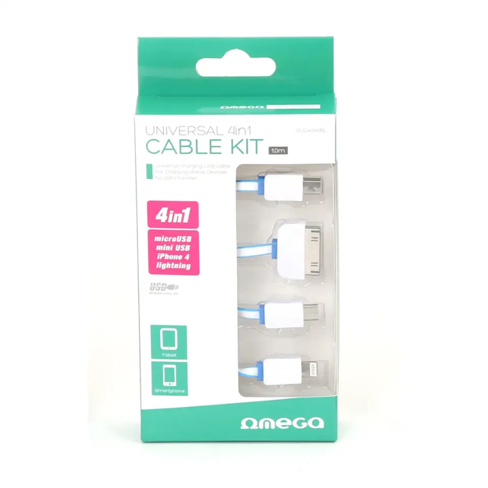 OMEGA HYDRA 4IN1 MICRO USB + MINI USB + IPHONE4 + LIGHTNING USB CABLE KABEL WHITE & BLUE [42812]