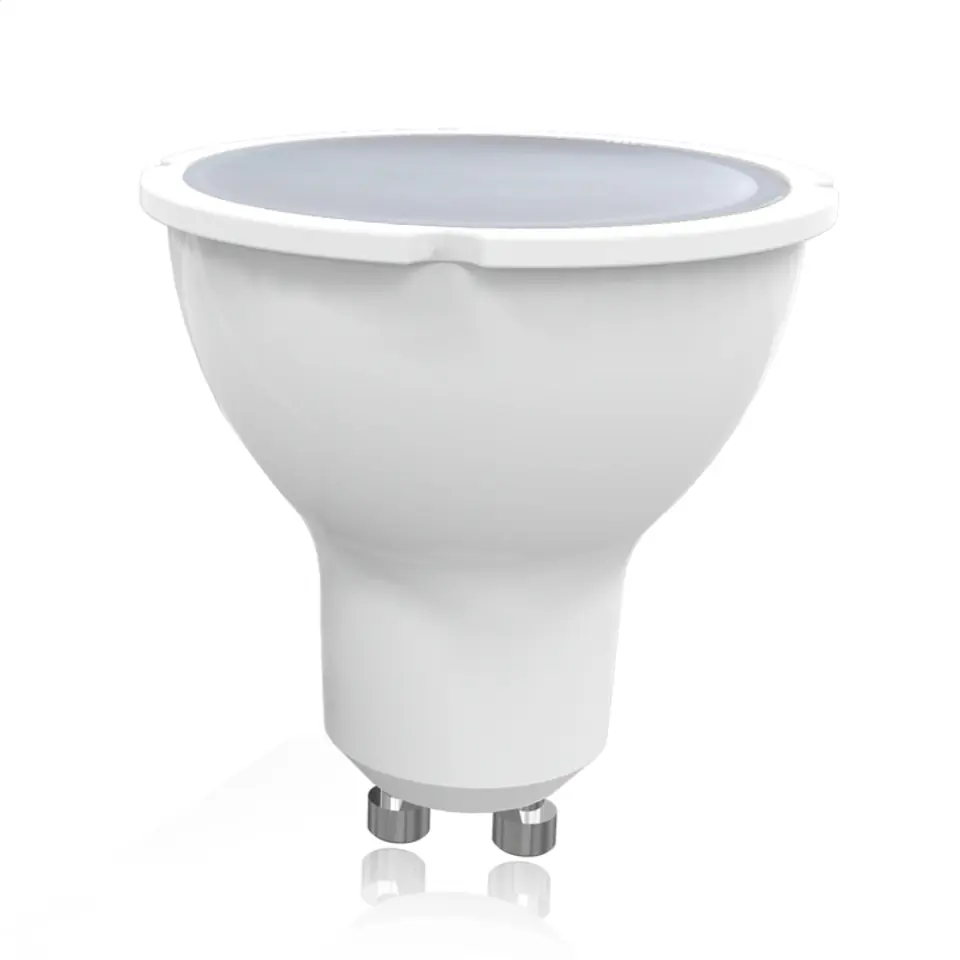 Moc: 7W Lumeny: 500 Temperatura barwowa: 2800K ciepły biały Napięcie: AC220-240V 50/60Hz Kąt świecenia: 100° Gwint: Gu10 Temperatura pracy: - 20-+45°C Współczynnik mocy: >0.5 95% wartości strumienia świetlnego: CRI: > 80 Ra Prąd lampy: 60 mA Rodzaj i ilość LED: 12PCS SMD2835 Czas zapłonu: Żywotność: 25 000 godz. Liczba cykli włącz/wyłącz: 15 000 Wymiary: 55x50 mm Nie stosować ze ściemniaczami Współczynnik zachowania strumienia świetlnego na zakończenie nominalnego okresu trwałości: >70%