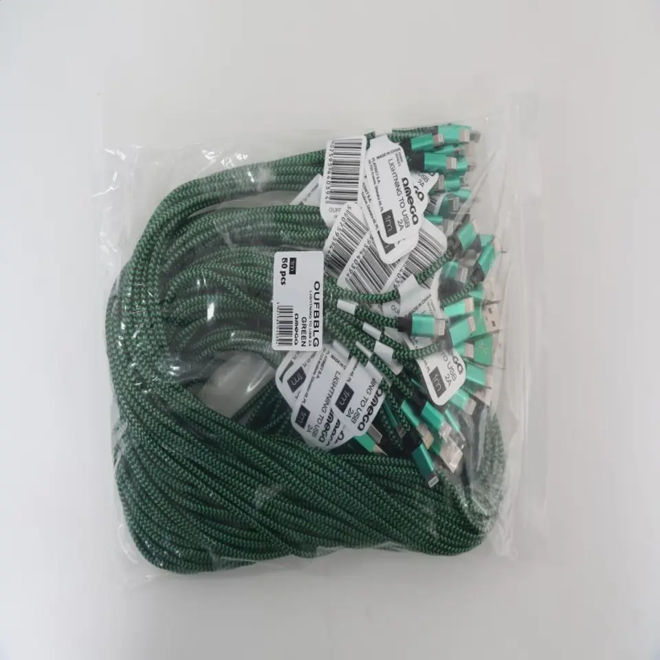 OMEGA LIGHTNING TO USB FABRIC BRAIDED CABLE KABEL 2A 1M POLYBAG GREEN-BLACK [44039]