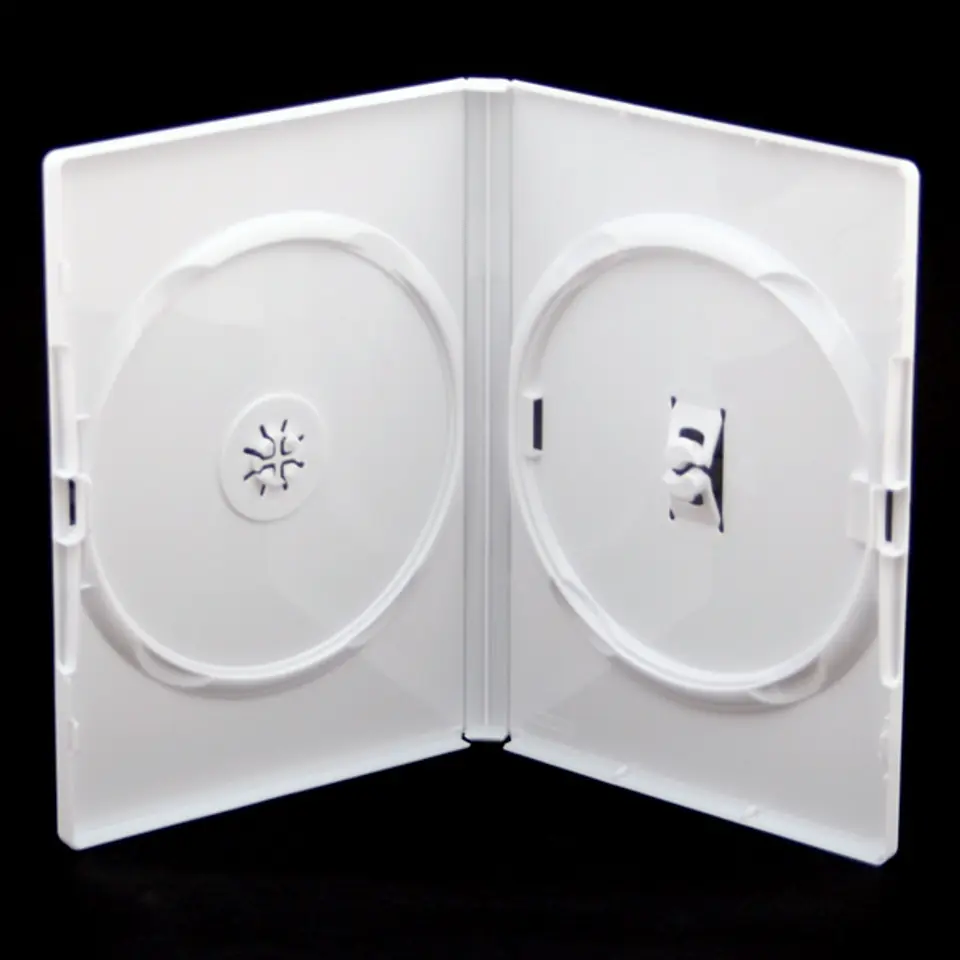 Białe pudełko DVD studiobox 14mm PODWÓJNE (side-by-side), wykonane z wysokiej jakości tworzywa o bardzo dużej odporności na zarysowania.Ma bezpieczne mocowanie płyty. Bardzo dobrej jakości folia chroni poligrafię przed zabrudzeniem.Posiada po lewej stronie uchwyty umożliwiające włożenie książeczki.Idealne do przechowywania wspomnień z ważnych uroczystości w Twoim życiu: ślub, komunia, chrzest, etc.