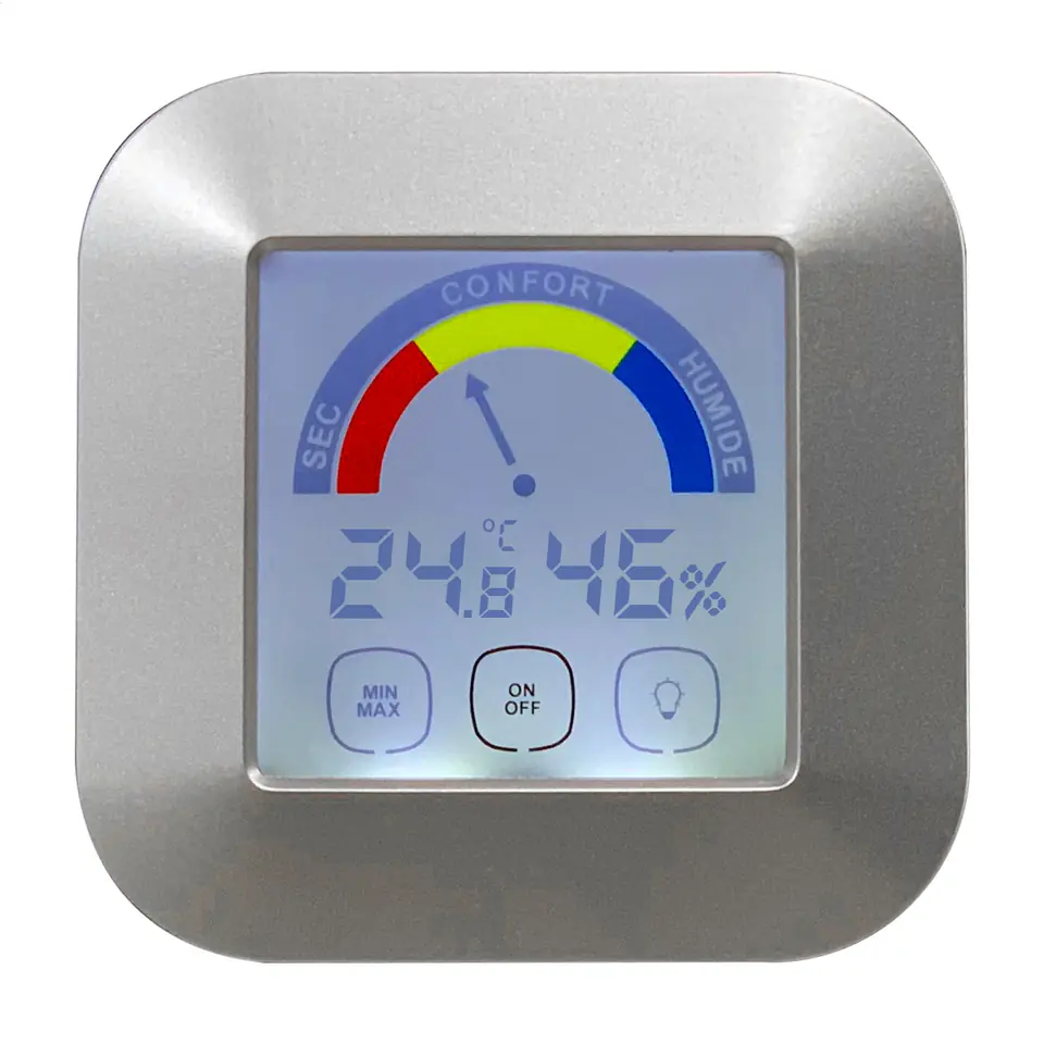 Funkcje: pomiar temperatury powietrza, pomiar wilgotności powietrza, zapis maksymalnej i minimalnej temperatury i wilgotności powietrza, prognoza trendów temperatury i wilgotności powietrza, temperatura w °C lub F, 8 poziomów wilgotności